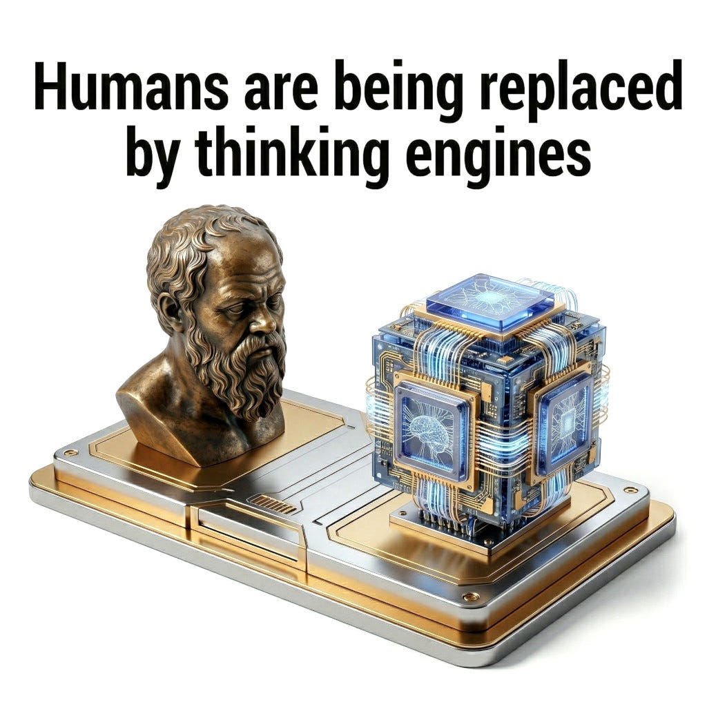 The question lands differently when you’ve followed the argument all the way down. This isn’t a provocation anymore. It’s a real and serious question, that can be given a real answer. The honest answer for most people reading this is yes. You’re a general-purpose cognitive engine being slowly replaced by a cheaper engine, and it does the same job better.
